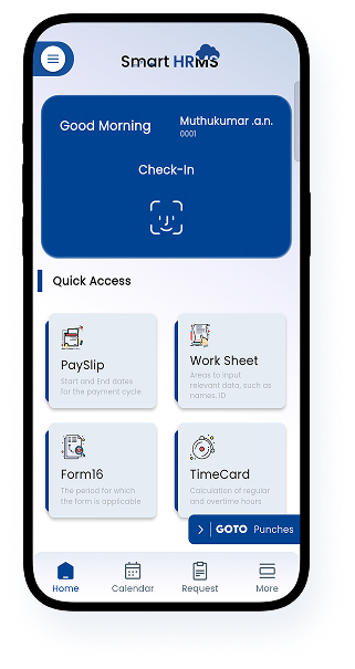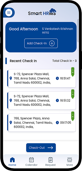 Employees can mark attendance directly through the app, making it ideal for remote and field teams — no hardware needed.
